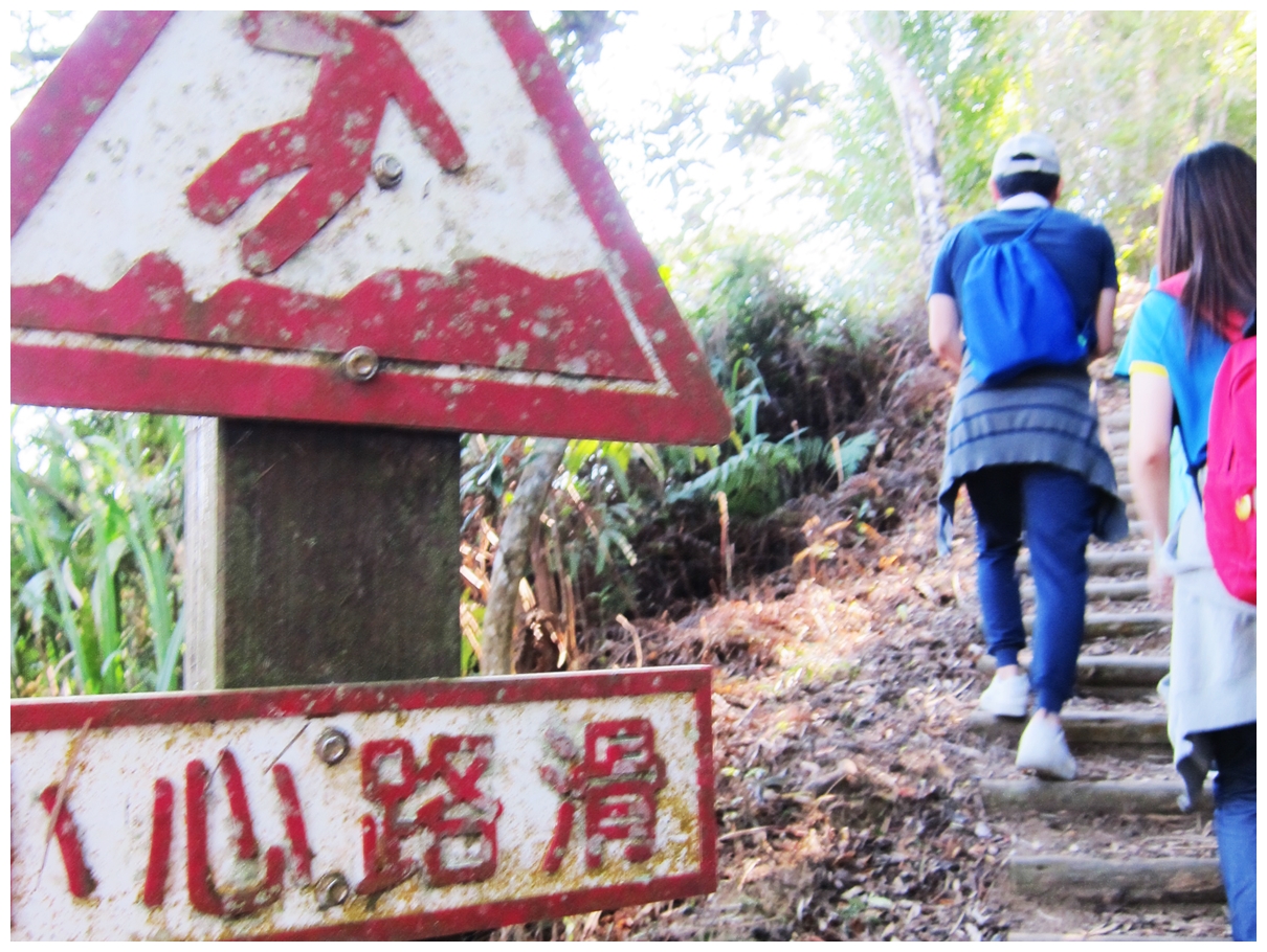 忘了帶上登山杖小幫手,大夥兒走的小心翼翼。