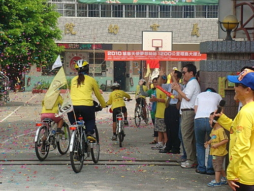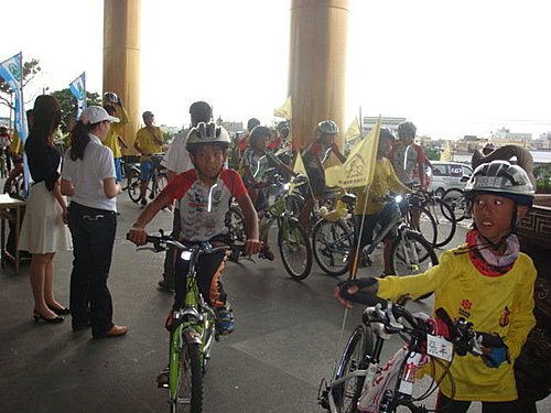 小英雄們頂著火紅的太陽騎單車,從西螺-