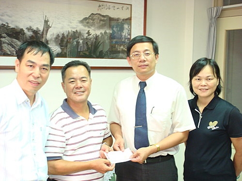 捐家扶中心--20萬元(左起蔡院長、劉主任、張院長、王主任) 感謝一品堂的家人對88水災,盡心盡力的付出