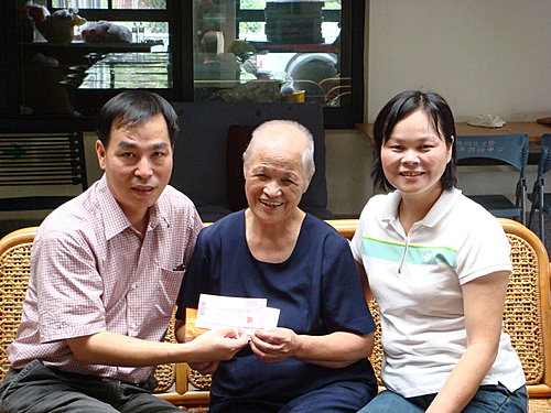 將協助小朋友日後教育基金 捐良顯堂基金會--918,400元(左起蔡院長、埔里陳綢阿嬤、王主任)